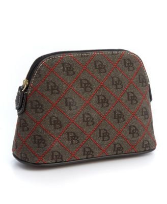 A diamond "quilted" pattern with monogram logos lends a chic look to the cosmetic case by Dooney & Bourke.
